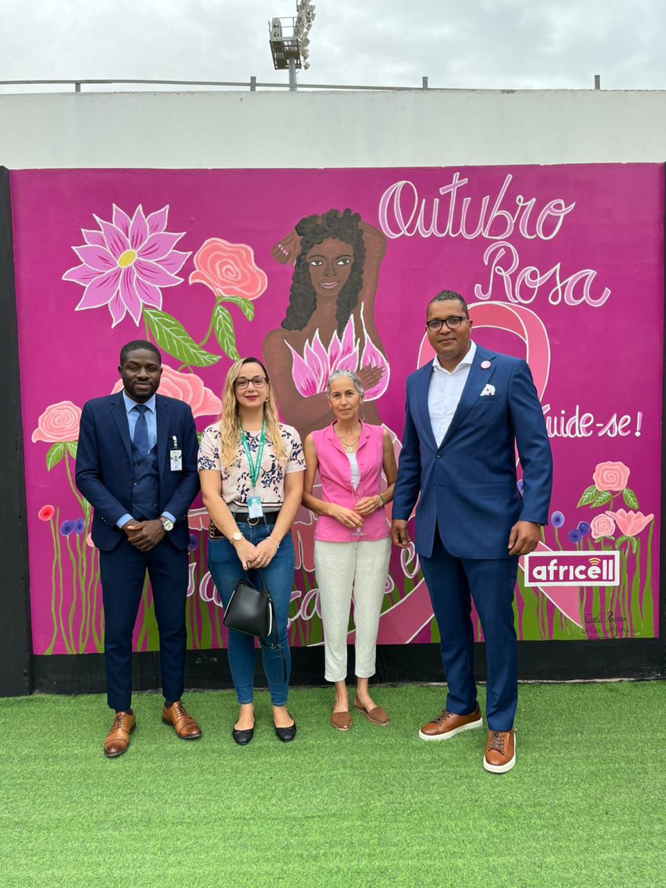 O responsável afirmou que a obra de arte é dedicada ao Outubro Rosa e simboliza o contributo da Africell neste movimento de alerta sobre a importância da prevenção e diagnóstico precoce do cancro da mama.
